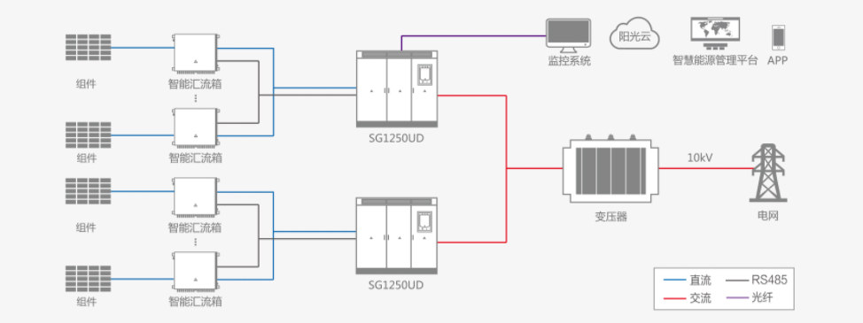 常見(jiàn)的大型地面光伏電站的裝機(jī)容量多在100MW以上,組件朝向一致,無(wú)遮擋,以35kV及以上電壓等級(jí)接入電網(wǎng)。
