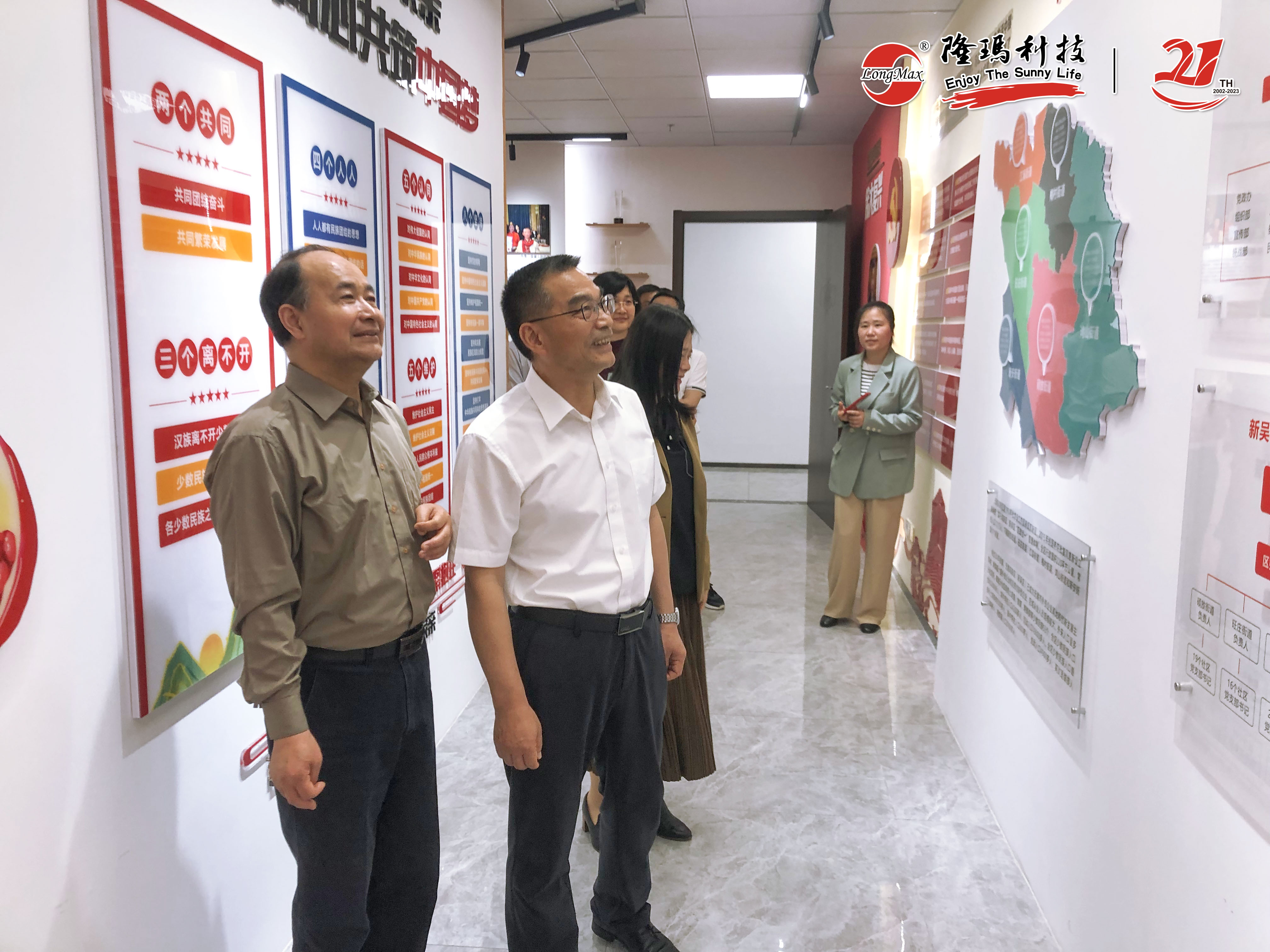考察團聽取了一樓公司業(yè)績展板的情況介紹,實地參觀了企業(yè)內(nèi)“人大代表工作站、政協(xié)委員工作室”、“新吳致公黨黨員活動之家”和“民族團結(jié)紅石榴家園”等活動陣地。